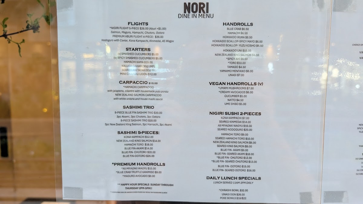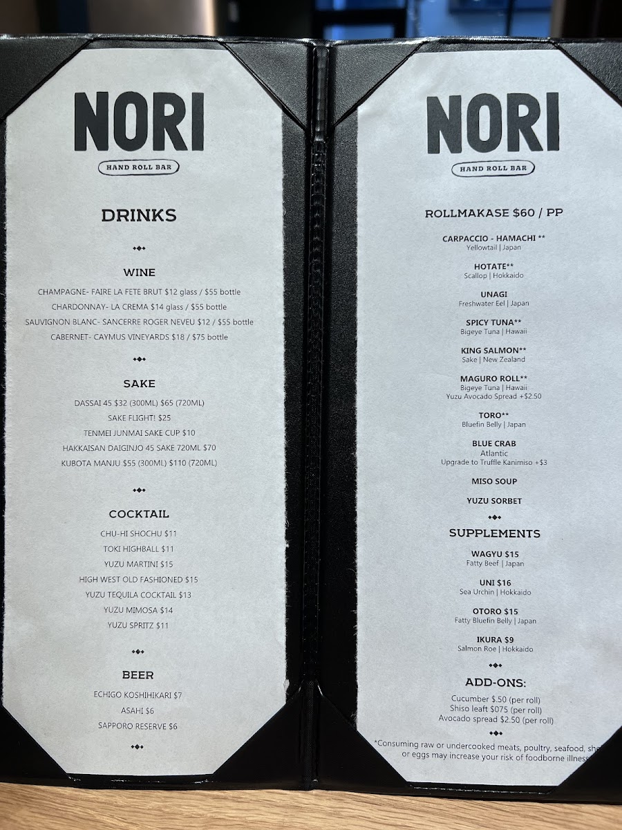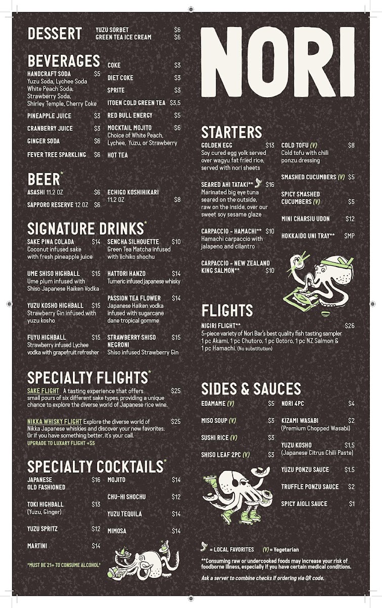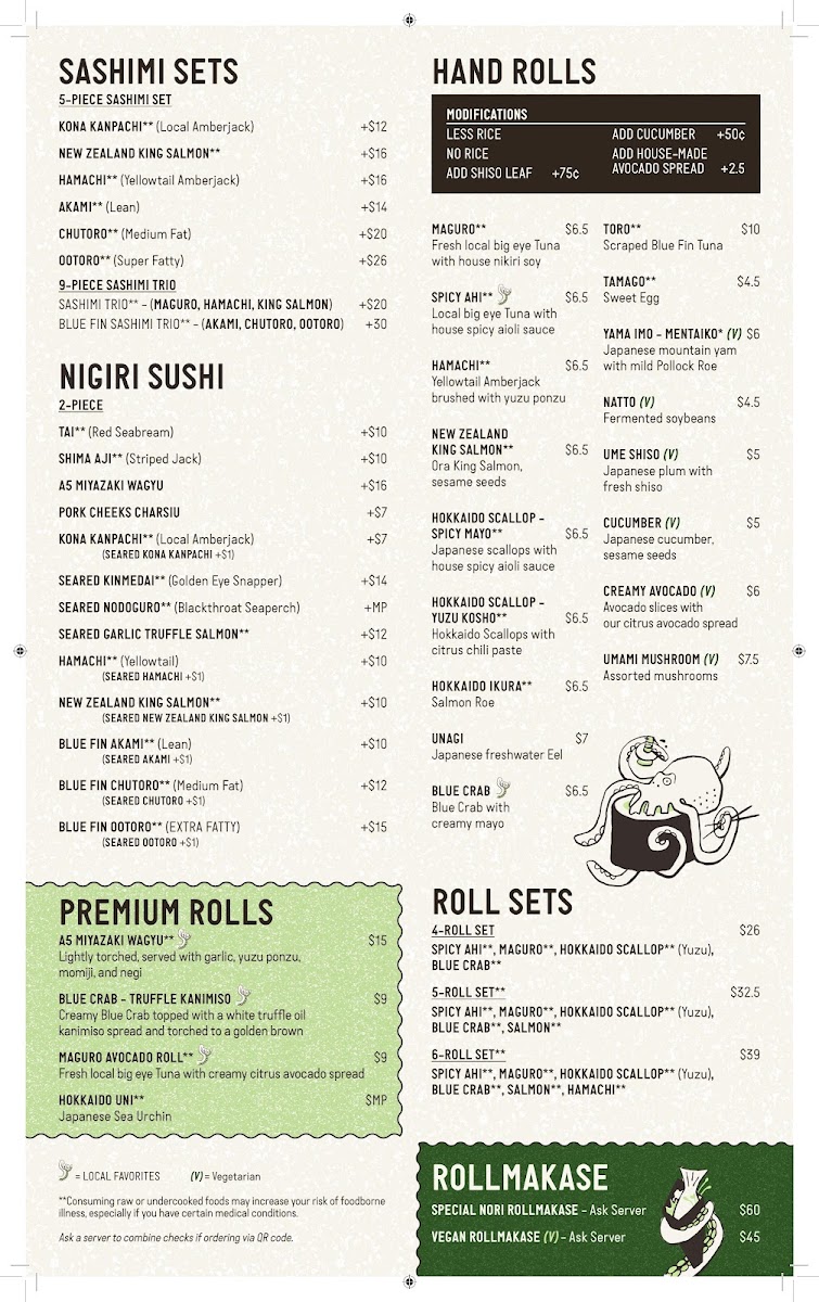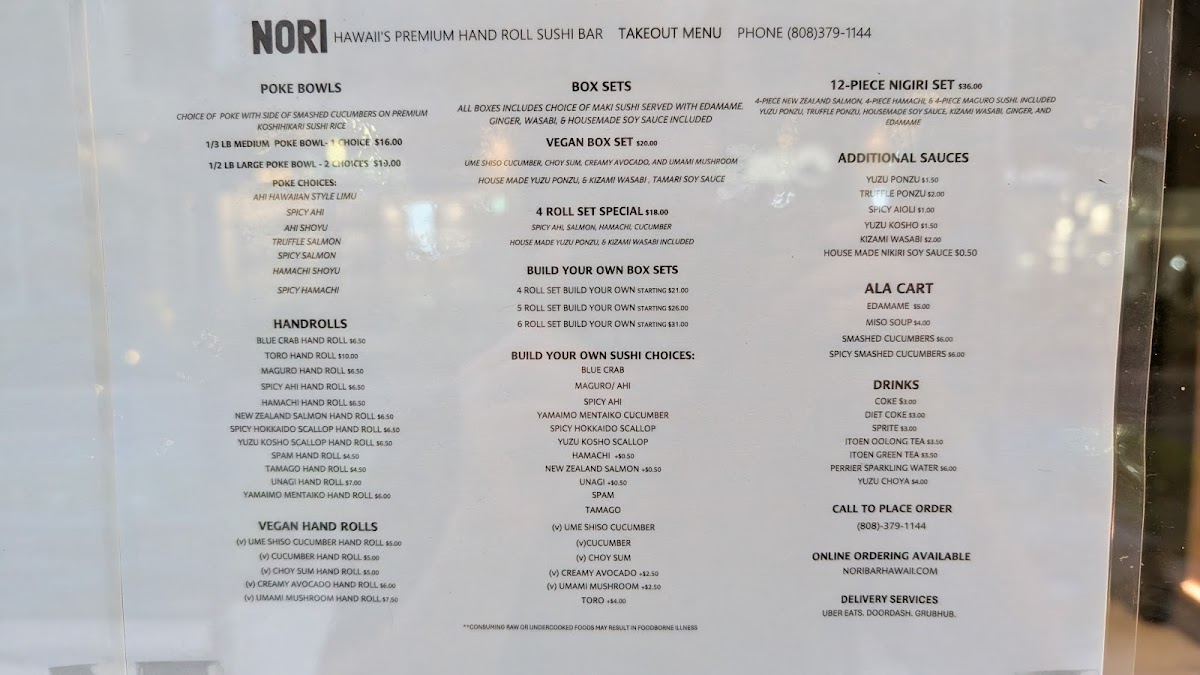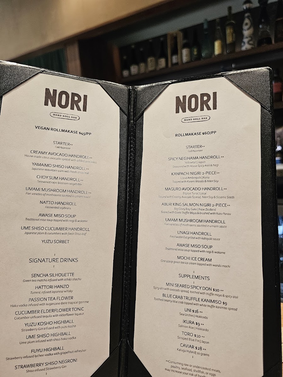 Nori Bar Hawaii offers a thoughtfully curated menu centered on fresh, vibrant sushi and hand rolls. The selection feels approachable yet refined, perfect for casual meals or relaxed gatherings where the focus is on enjoying quality ingredients prepared with care.